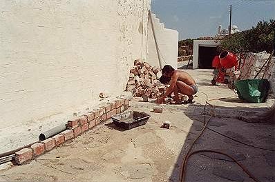 2002 IST DAS JAHR DER AUSSENSANIERUNGEN: WIR MÖCHTEN DAS HAUS GERADLINIGER HABEN UND DIE “OHREN” AUF DEM DACH PLUS TAUBENSCHLAG STÖREN UNS. WIR STREICHEN ALLES WAS WIR SCHON KÖNNEN UND NICHT DIREKT HAUSFASSADE IST, DA DIESE NACH DEM WINTER NOCH ZU FEUCHT IST. |