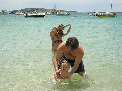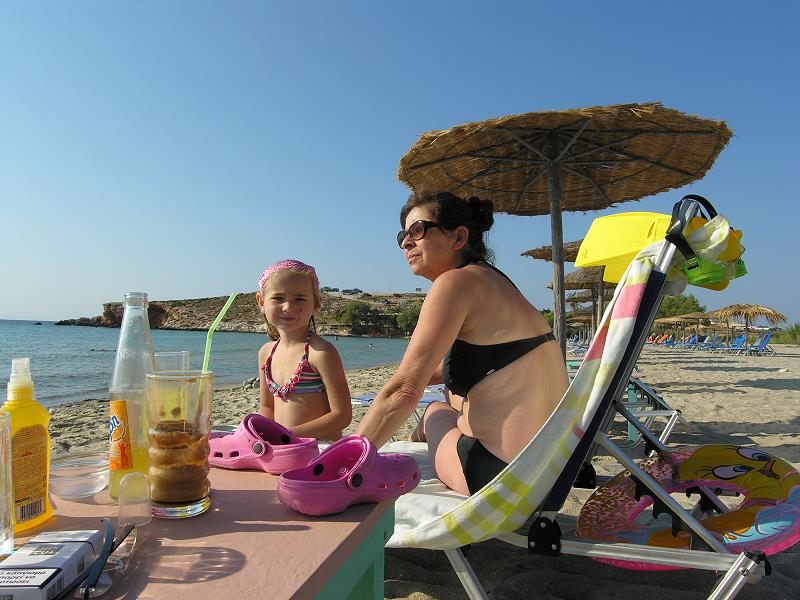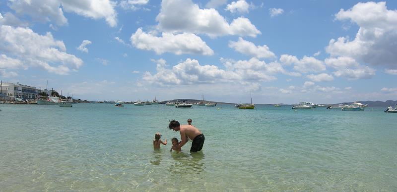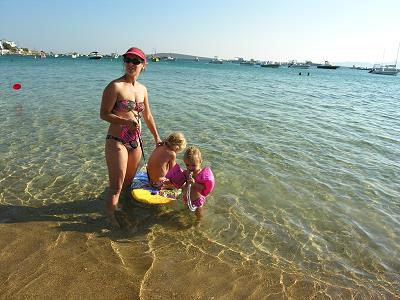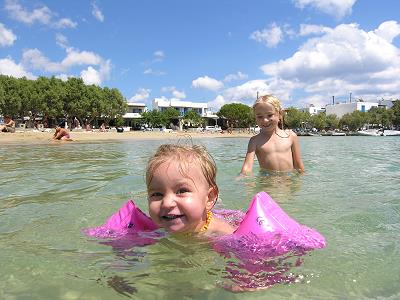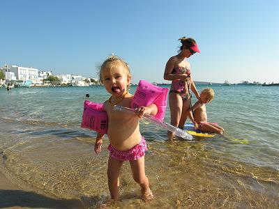 BADEN IN ALIKI. KLEIN SOPHIE HAT GAR KEINE ANGST UND KANN SCHON INS WASSER LIEGEN