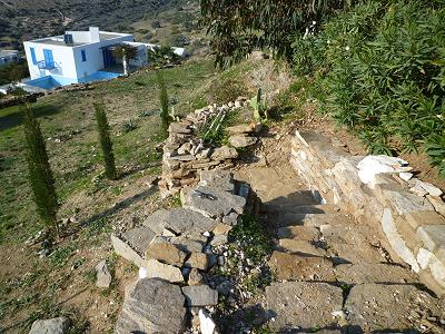 ICH ENTDECKE DIE VON CHRISTOPH ZUM UNTEREN GARTEN GEBAUTE TREPPE...