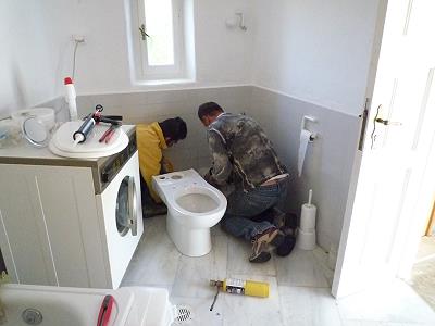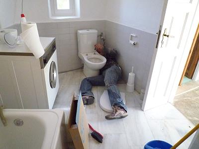 DIE TOILETTE HAT EINEN SPALT UND WIRD VON ARTHUR ERSETZT. DIE ROSMARINHECKEN HINTER DEM HAUS WACHSEN.