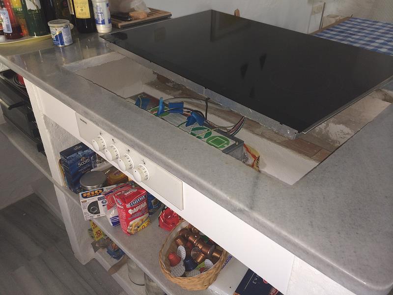 ICH SCHAFFE DEN ANSCHLUSS UNSERES “AARWANGER” GLASKERAMIKKOCHFELDES, DAS UNS CHRISTOPH BEINER IN SEINEM AUTO AUS DER SCHWEIZ