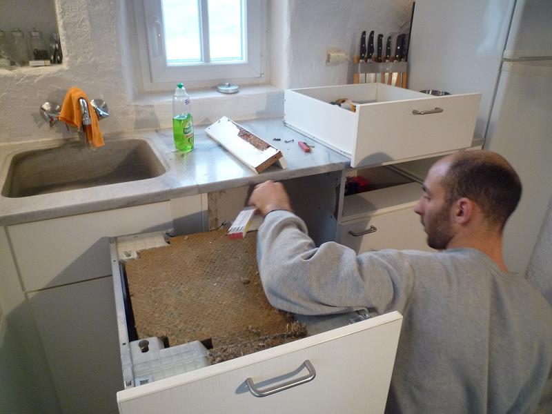 DER WASSERDAMPF DER GESCHIRRSPÜHLMASCHINE HAT DIE OBERE BLENDE AUFGELÖST. KÜCHENBAUER GEFRAGT!