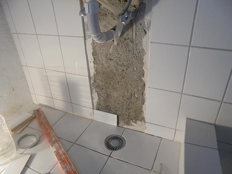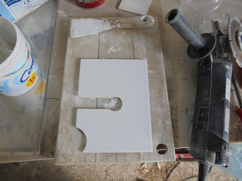 DA ARBEITE ICH DRINNEN + MACHE DAS BAD IM GUESTHOUSE FERTIG: EINIGE PLATTEN SIND KOMPLIZIERT ZU SCHNEIDEN. |