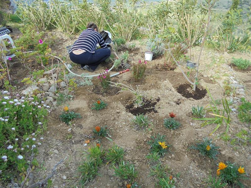 NEUE TAMARISKE ANSTELLE DES MAULBEERBAUMES VOR DEM GUESTHAUS. EINER ARBEITET, EINER TUT NUR SO! |