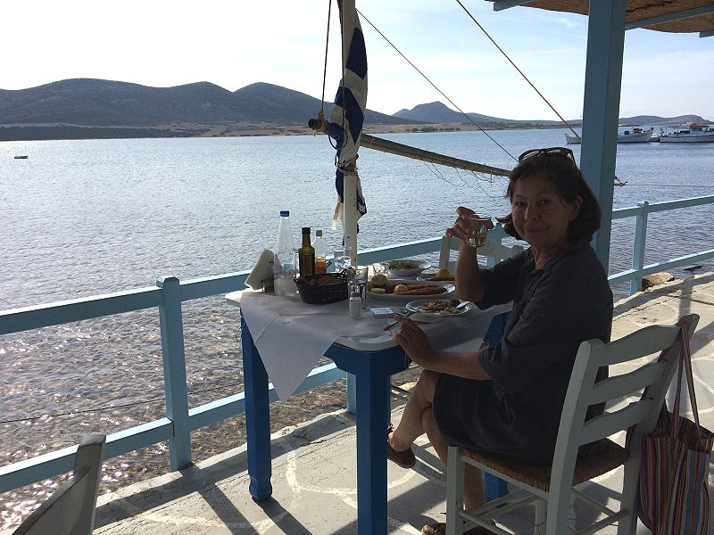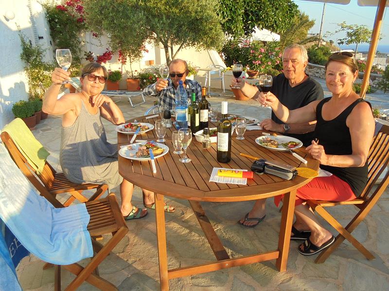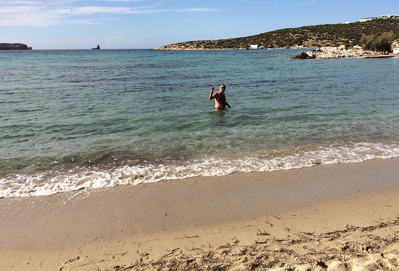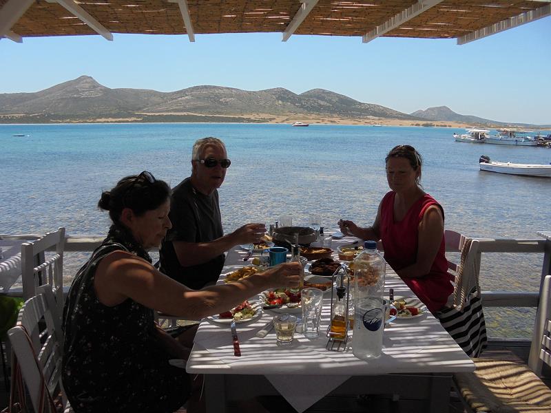 LETZTES BADEN IN DER NÄHE VON KRIOS, ABSCHIEDSESSEN MIT CHRISTINE, DANN HOLT UNS DER FLÜÜGER WIEDER AB! |