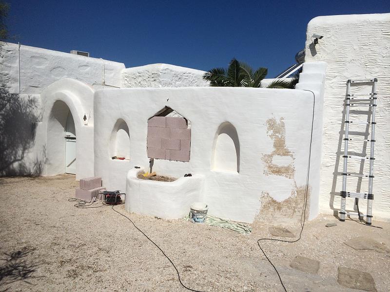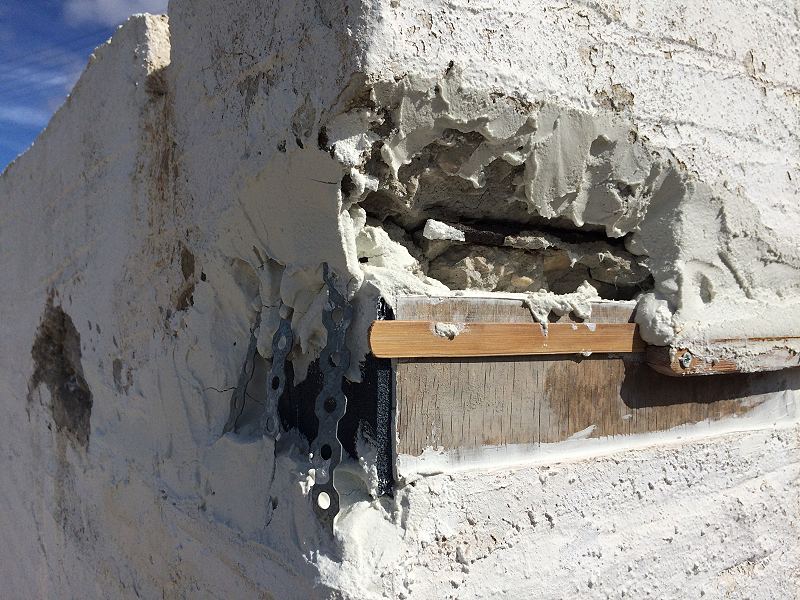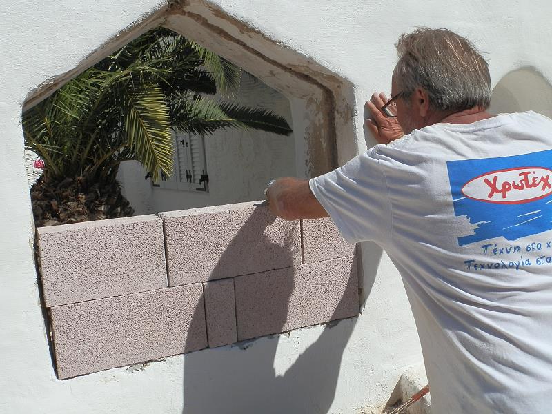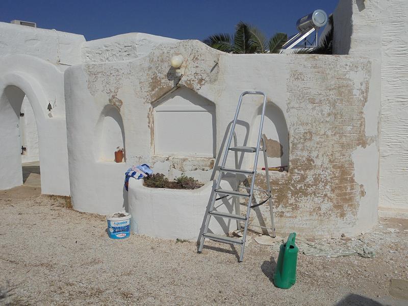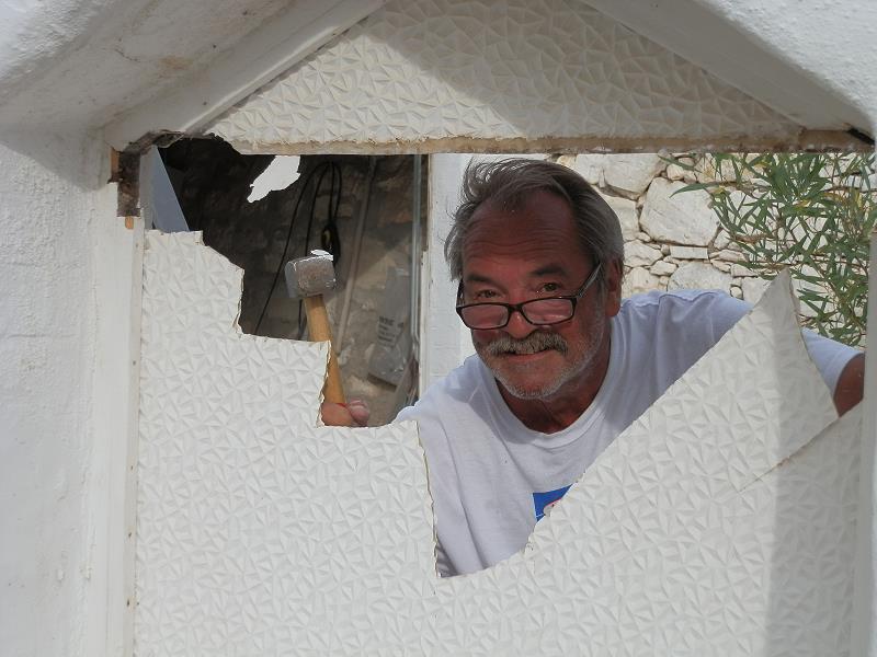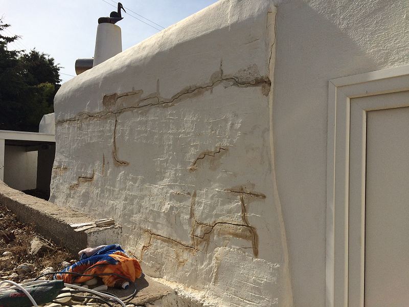 DANN KOMMT NOCH DIE RÜCKSEITE DES GÄSTEHAUSES DRAN: RISSE AUSFRÄSEN, KITTEN, VERPUTZEN, GANZ EINFACH ! |