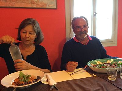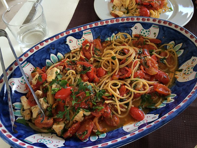DANN “KIPPT” DAS WETTER. AB NUN GEHEN WIR NICHT MEHR IM MEER SCHWIMMEN. ABER BEIM ITALIENDER ESSEN:FEIN! |