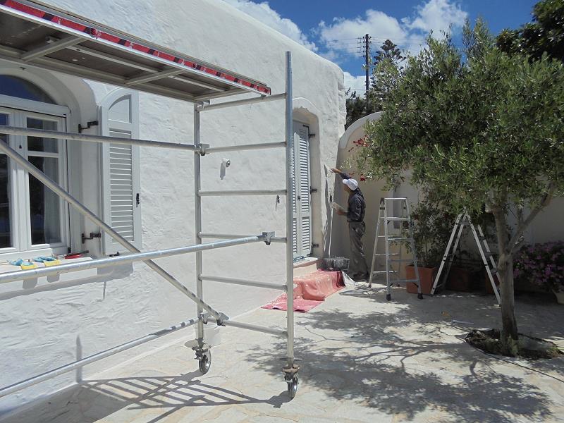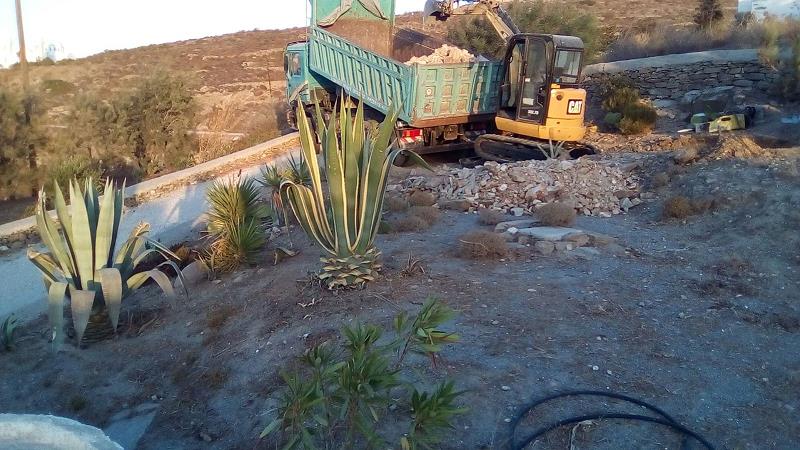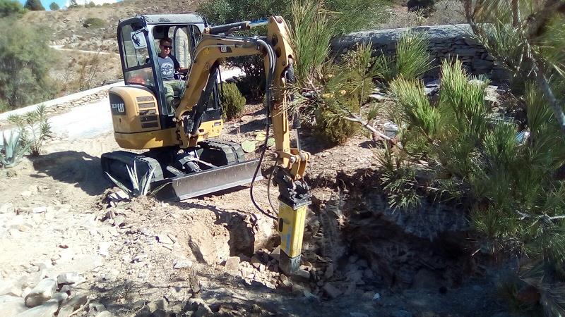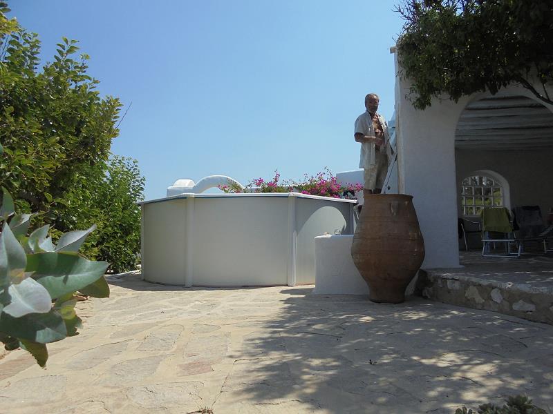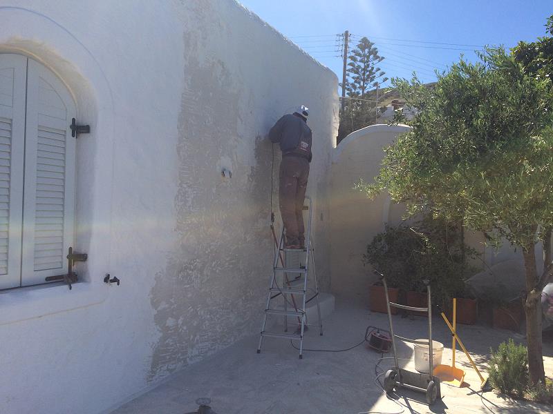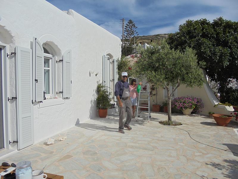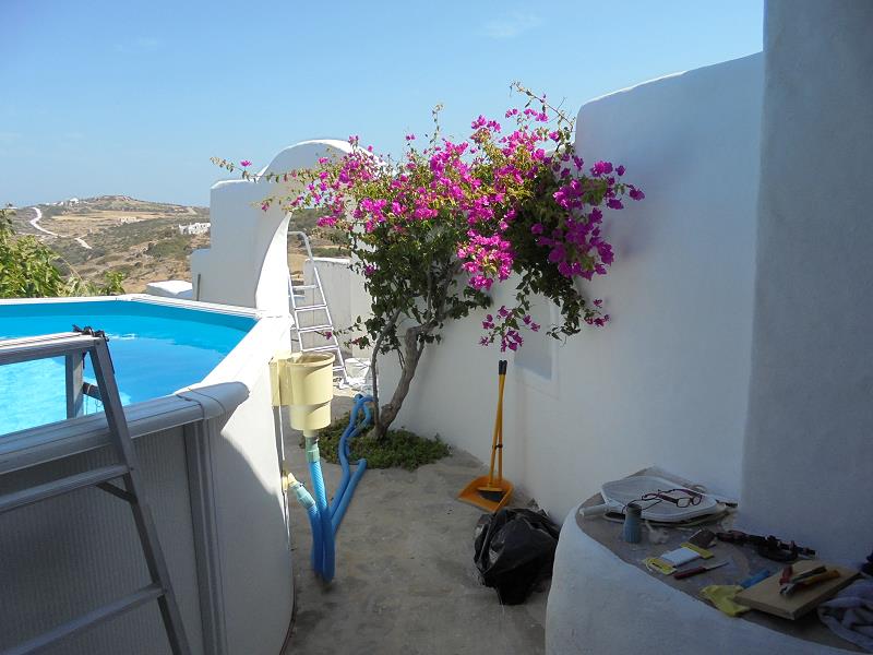 NUN SIND WIR AM 26. OKTOBER WIEDER DA, UM DAS BESTE AUS DEM SCHADEN ZU MACHEN! EIN LANG GEHEGTER WUNSCH, DAS SAUBERE UND TRINKFÄHIGE BERGWASSER DER TIEFENBOHRUNGS-PUMPE SEPARAT INS HAUS EINZU- LEITEN, MÖCHTEN WIR MIT EINEM ZWEITEN WASSERTANK, DER NUR DEN BEIDEN HÄUSER DIENT, TRENNEN VOM WASSER DER BESTEHENDEN ZYSTERNE, WELCHE NUR NOCH DER BEWÄSSERUNG DIENEN SOLL. DIESEN ZWEITEN TANK WIRD VOR UNSERER ANKUNFT DURCH CHRISTINE ORGANISIERT UND DAS “LOCH” IM FELSEN IST FERTIG, ALS WIR NACH PAROS KOMMEN. ES IST EHER ETWAS ZU TIEF GEGRABEN, WIE SICH ZEIGEN WIRD... DIE ERSTEN FOTOS ZEIGEN DEN WASSERSCHADEN UND DIE ARBEITEN ALSO NOCH VOR UNSERER ANKUNFT: |