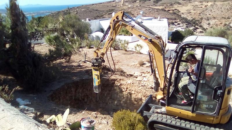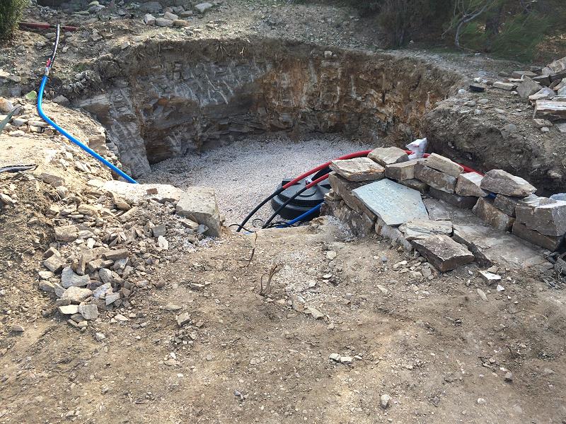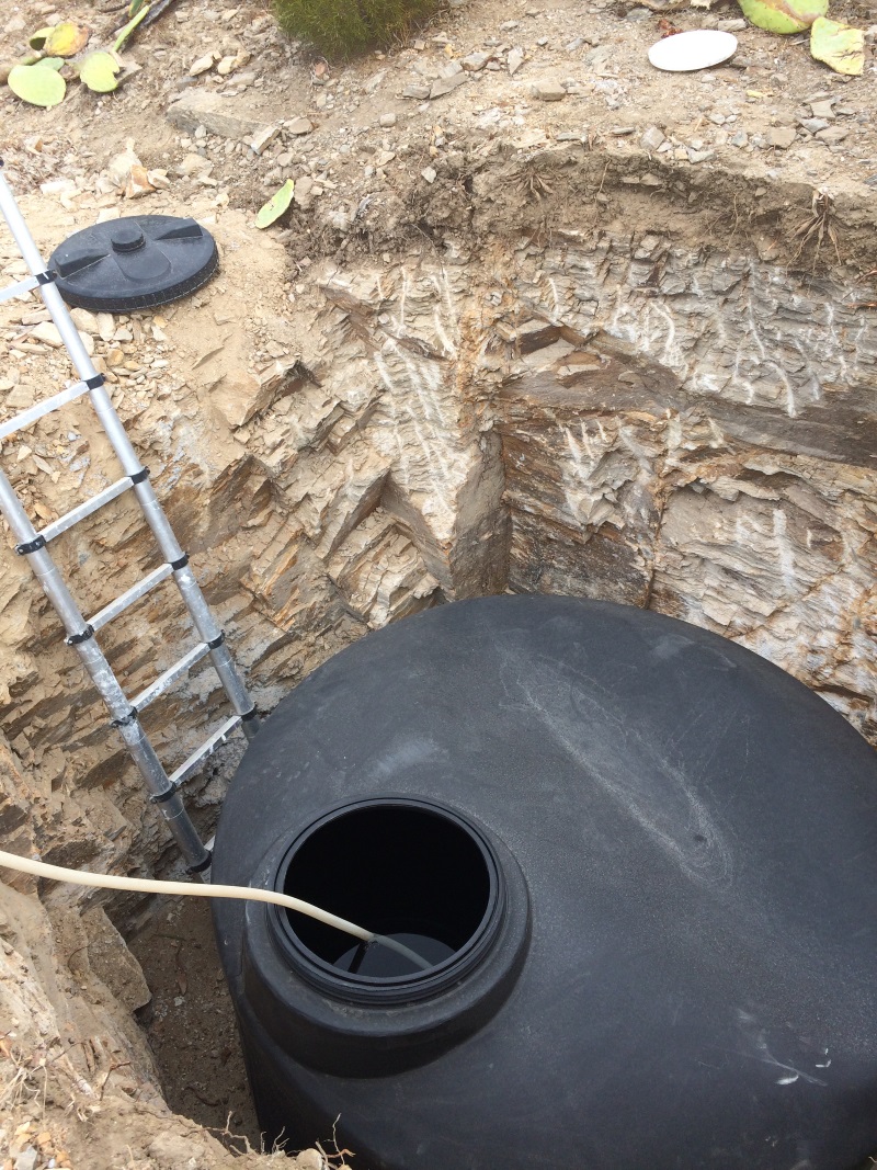 DAS LOCH FÜR DEN NEUEN TANK WIRD VOR UNSERER ANKUNFT GEBAGGERT; ALLES IM “FELS”... |