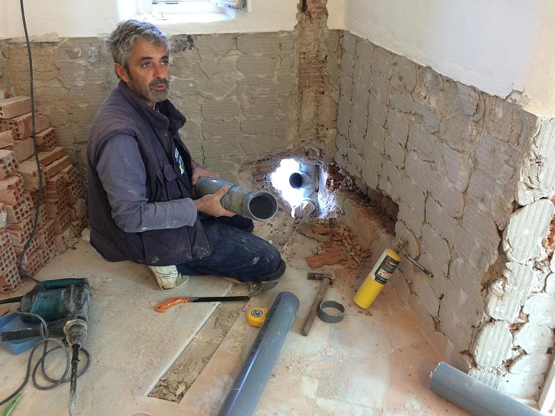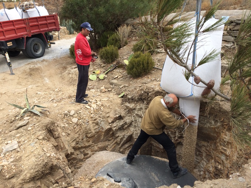SANITÄR ALEX IST AM WIRKEN, ZUSAMMEN MIT ONKEL SOTIRIS DER NEUE TANK WIRD GE- + HINTERFÜLLT |