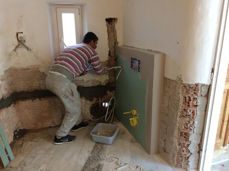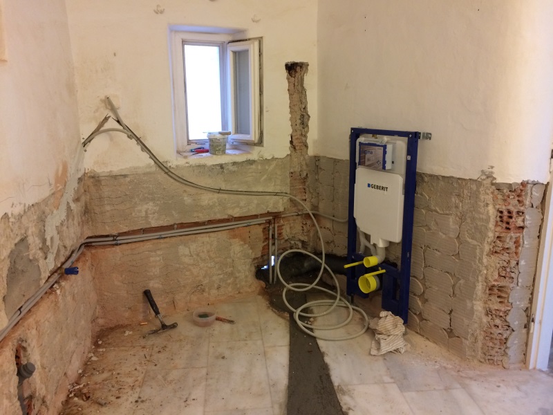 BODENFREIES WC > GEBERIT. DIE NEUEN WASSERLEITUNGEN UND ABLÄUFE SIND MONTIERT, DITO ELEKTROLEITUNGEN |