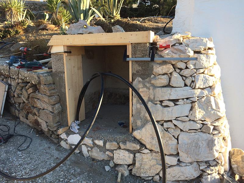 NEUE PUMPE IM NEUEN PUMPENHÄUSCHEN. DAS BAD IST SCHON FAST VERPUTZT, DANK STEFANOS, DER MITHILFT! |