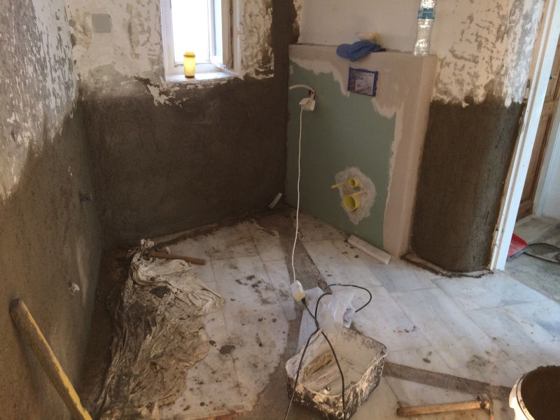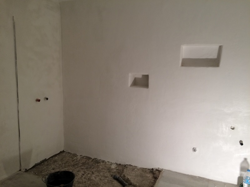 WEGEN DER DUSCHE ANSTELLE BADEWANNE MÜSSEN DIE NISCHEN WEG/VERKLEINERT WERDEN. NEUER GRUNDPUTZ... |