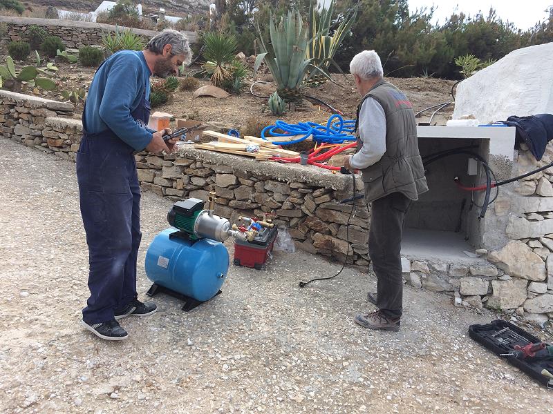 LEIDER HAT DIE NEUE PUMPE EINEN DEFEKT UND WURDE WIEDER AUSGEBAUT. WIR VERLASSEN PAROS MIT FREUDE, WAS WIR ERREICHT HABEN, SIND ABER AUCH ETWAS ENTTÄUSCHT, DASS DAS NEUE SYSTEM NOCH NICHT FUNKTIONIERT... |