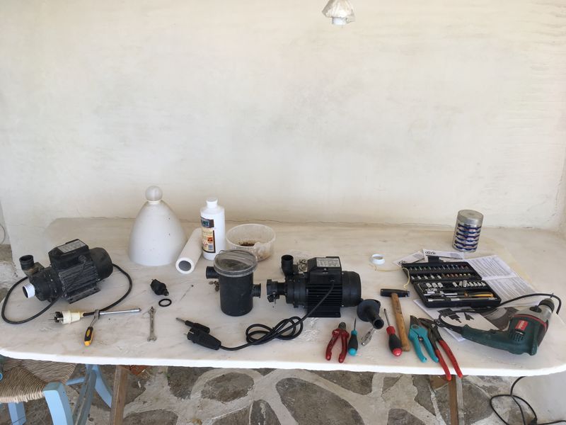 MEINE WESENTLICHSTE LEISTUNG IST DIESE FERIEN WOHL DAS FITMACHEN DER AM 28. FEBRUAR 2018 NEU INSTALLIER- TEN DRUCKEINHEIT DER BEWÄSSERUNG. NACH 3 WOCHEN IST SIE AUSGESTIEGEN. STEFANOS UND DER ELEKTRIKER KONNTEN DEN FEHLER NICHT FINDEN! DIE ERSETZTE EINHEIT HABE ICH GEGEN EINE NEUE TAUSCHEN LASSEN UND DIE EINSTELLUNGEN NEU GEMACHT: NUN LÄUFT SIE SCHON SEIT 10 TAGEN UND HOFFENTLICH AUCH NOCH JAHRELANG.... |