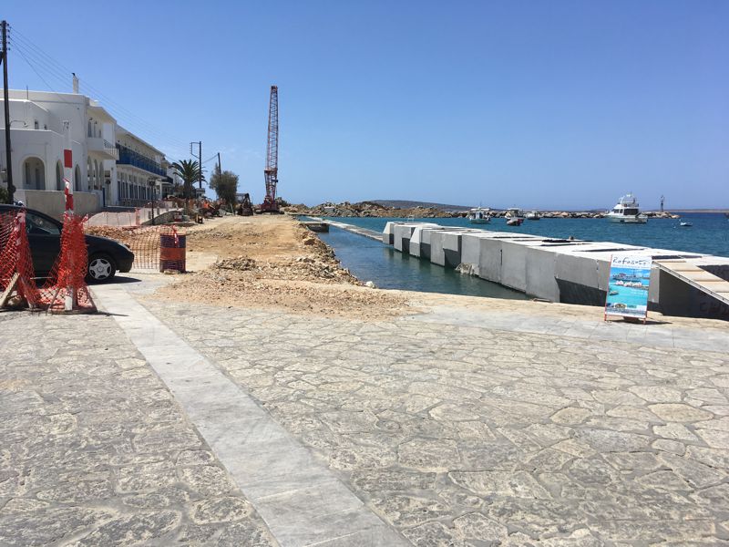 IN ALIKI WIRD AM NEUEN HAFEN GEBAUT; DAZU IST EINE “ELEMENTFABRIKATION” AM SÜDLICHEN STRAND ENTSTANDEN |