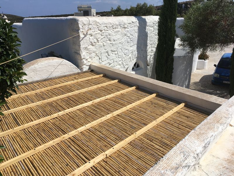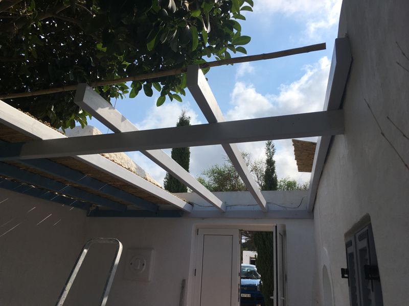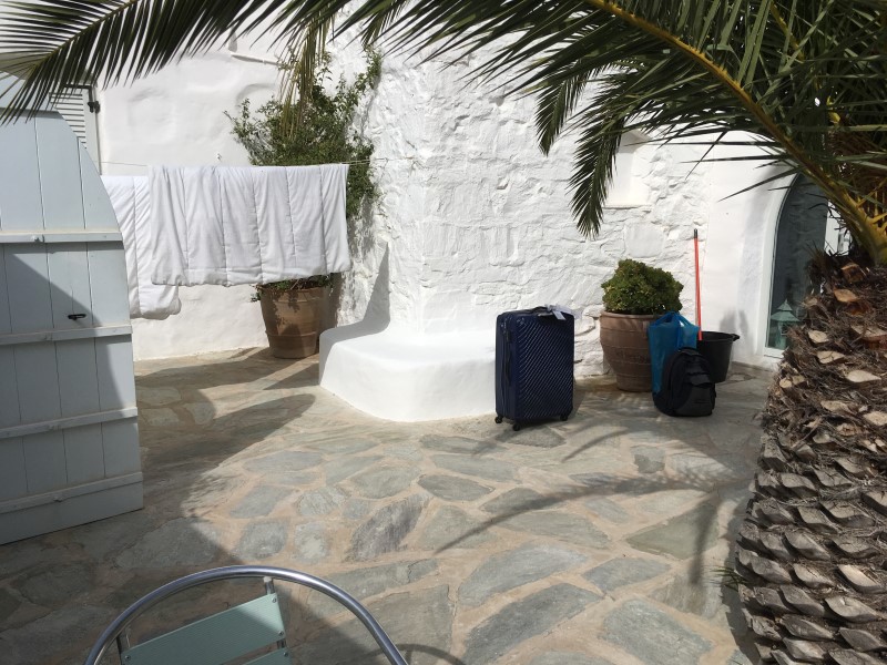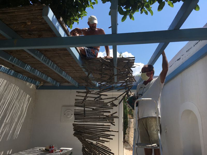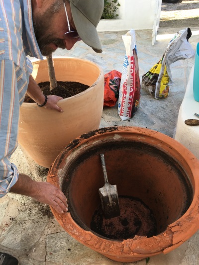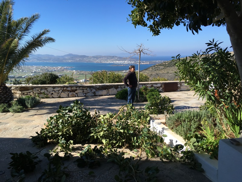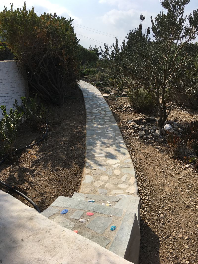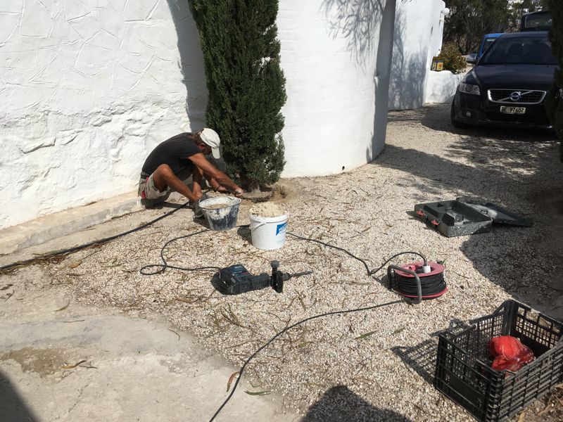 ICH VERSUCHE, DEN AUSGEWASCHENEN PERGOLABODEN FEINER ZU MACHEN. NOCH LEERE AGIA IRINI (ICH IM WASSER!) |