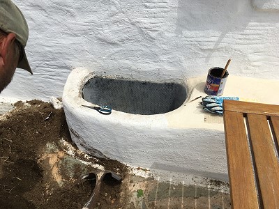 DER BOUGI IST GEPFLANZT... DER SITZBANK IM INNENHOF WIRD SANIERT, ER HAT EINEN TIEFEN SPALT! |