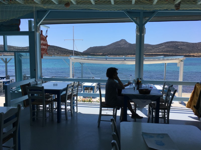 ODER, WIE IMMER, EIN LIEBLINGSPLATZ: DIE SÜDSPITZE VON ANTIPAROS MIT DER INSEL DESPOTIKO UND RESTAURANT CAPITAN PEPPINOS! |