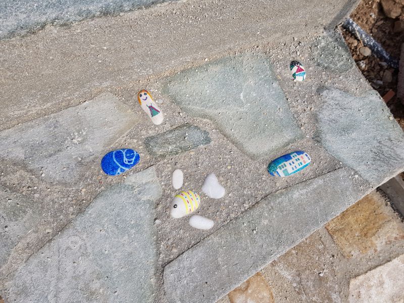 KLEINE “EINLAGEN”, VON HEDY ODER DEN KINDERN BEMALT LANGSAM WERDEN DIE WEGE FERTIG |
