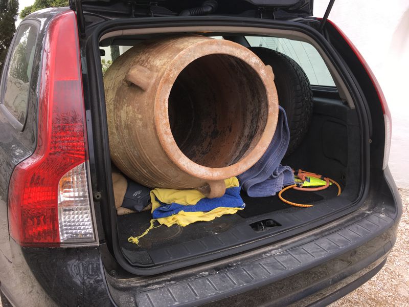 SCHWIEGERSOHN KUSI HAT FÜR MARCELLE ZUM GEBURTSTAG EINE AMPHORE BESTELLT, DIE WIR MIT NACH HAUSE NEHMEN. 1 CM DICKER UND SIE WÄRE NICHT IN DEN VOLVO GEGANGEN... |