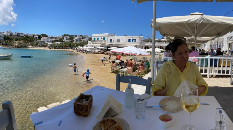PANOS, EINE FAST LEERE MAGAYA... ZUM BADEN AGIA IRINI, SUPER IN ALIKI, PALM BEACH MIT FRAPPÉ... |