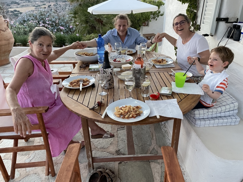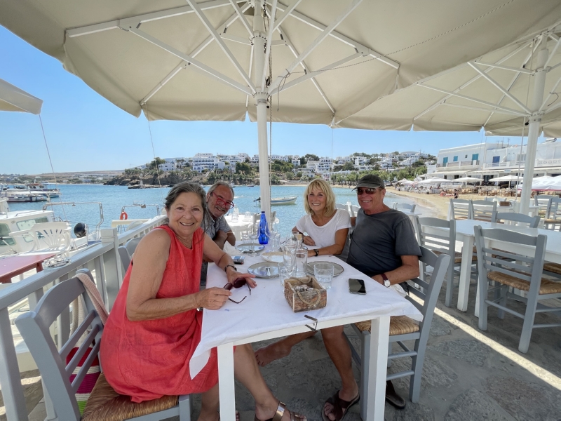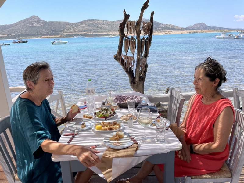 WIR TREFFEN REINA UND FEDDE IN PISO LIVADI UND GEHEN SONNTAGS MIT CHRISTINE NACH ANTIPAROS |