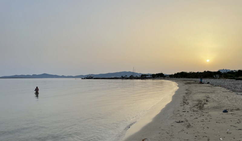 FÜR UNS SIND DIE ALIKISTRÄNDE SUPER! WENIG LEUTE, OFFENES THALASSA-MOU ZUM ESSEN, SONNENUNTERGANGSBAD |